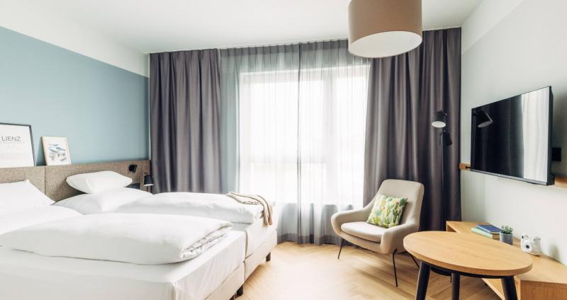 The hotel is located in the heart of the charming town of Lienz. Nestled between wooded mountain ridges and the Lienz Dolomites, the town enjoys a pleasant climate. In summer, the surrounding mountains and forests are ideal for hiking, cycling, and climbing. In winter, the region transforms into a winter wonderland. The nearby ski resorts offer perfect conditions for skiing, snowboarding, and cross-country skiing. Regardless of the season, Lienz always offers a wide range of leisure activities.